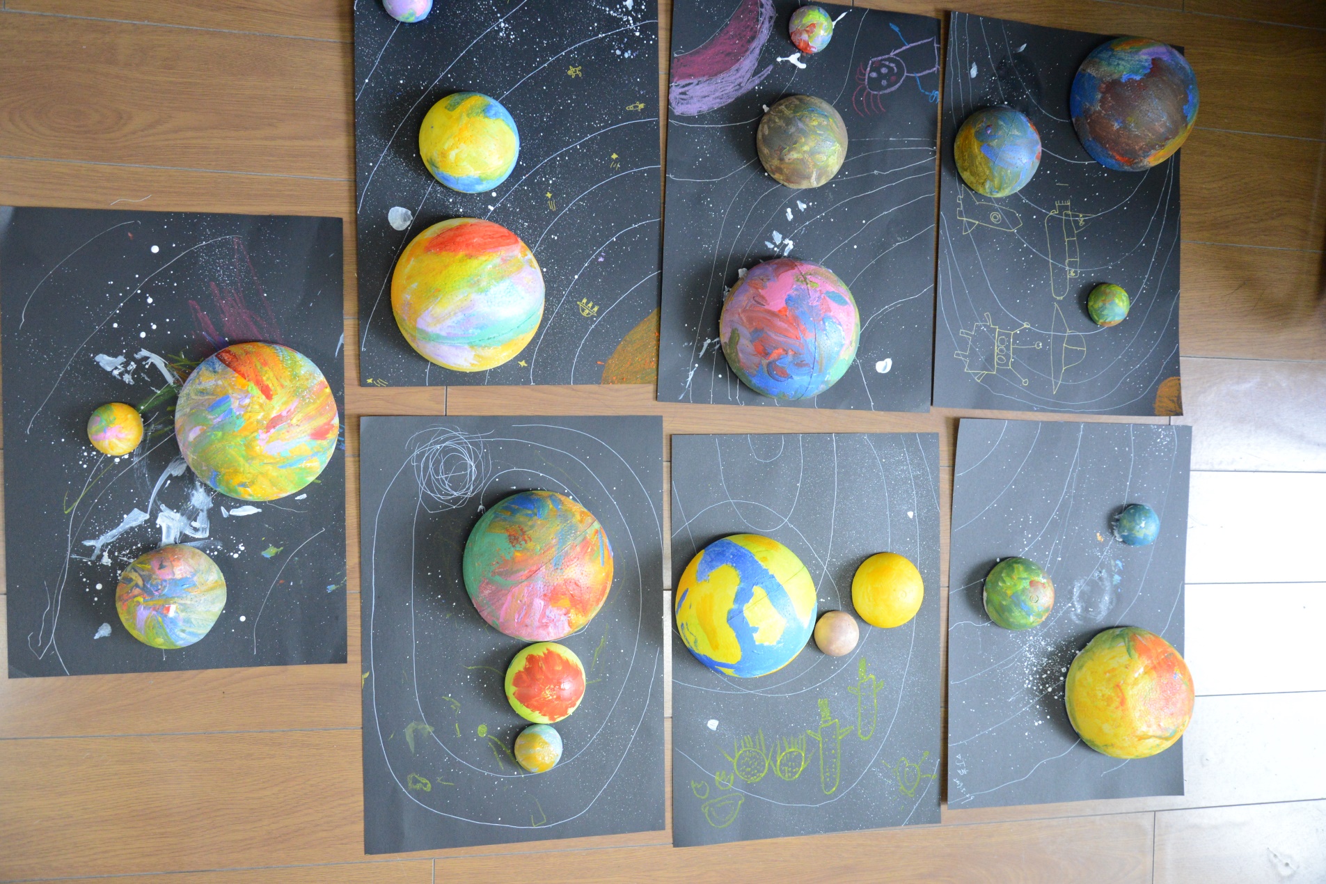 为三颗“星球”涂上自己喜欢的颜色,一个与别人不同的“宇宙”。
